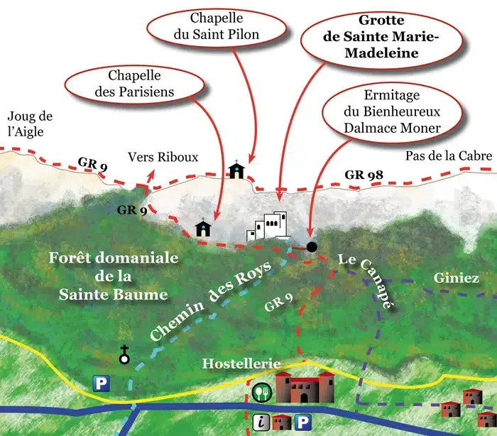 La Sainte Baume, comme Lourdes, est un haut lieu de pèlerinage. Saint Louis, à son retour de Croisade, deux papes, mais aussi François 1er et Louis XIV y sont venus. Enfin, la Sainte Baume a longtemps été l'ultime étape du Tour de France des Compagnons du devoir (qui ont d’ailleurs réalisé les vitraux à l’intérieur de la grotte).