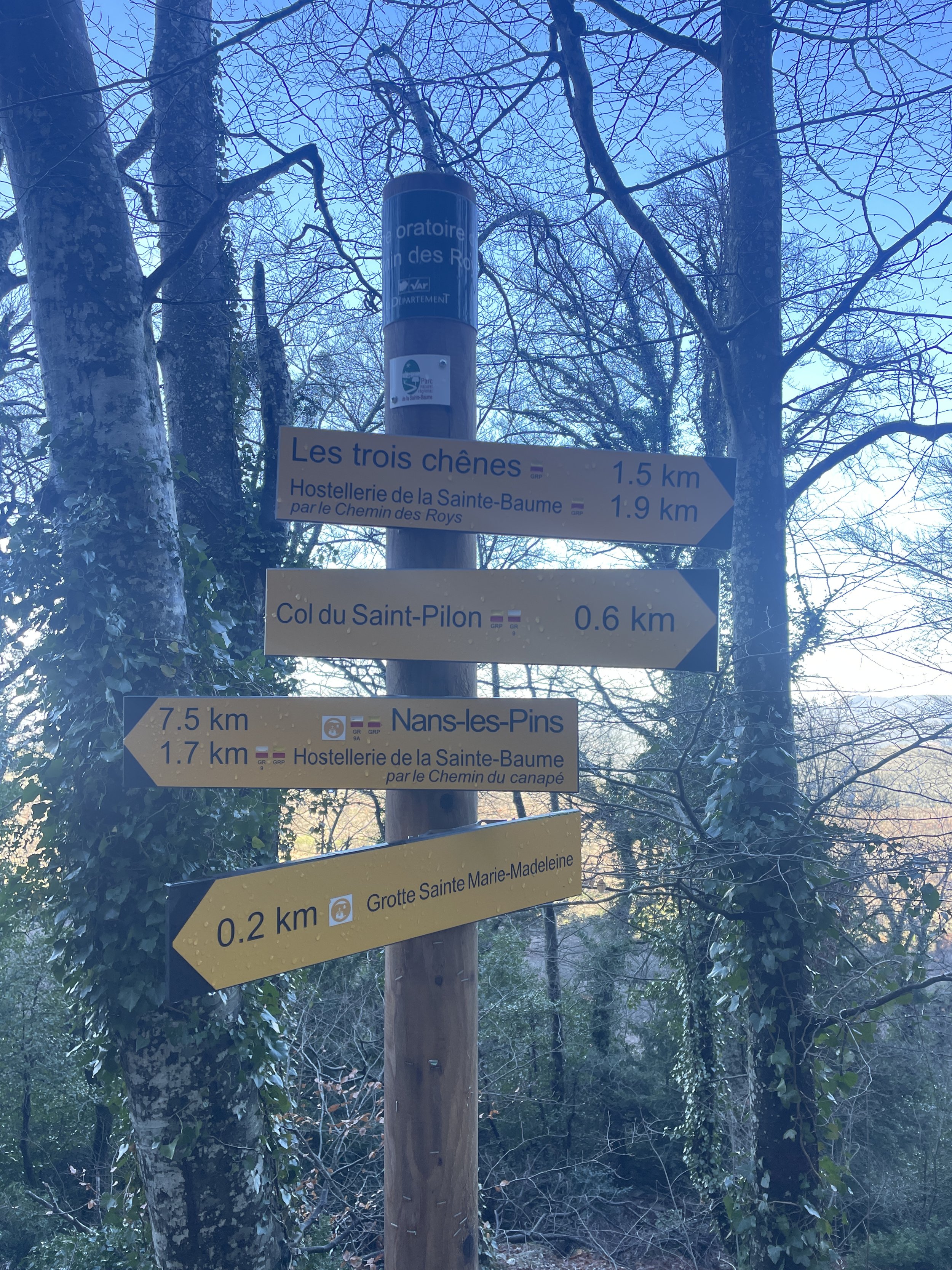 Du sanctuaire, il est également possible d’accéder à la chapelle du Saint Pilon, en suivant le GR9 puis le GR98 (c’est bien indiqué), en passant par le Col de Saint-Pilon (952 mètres d'altitude). Le retour peut se faire par le même Chemin des Roys ou à un moment, vous pouvez tourner pour emprunter le Chemin du Canapé puis l’Allée royale qui vous ramènera au parking des Trois Chênes, ou alors continuer jusqu’à l’Hostellerie de la Sainte Baume, une maison religieuse tenue par des frères dominicains. Vous trouverez également un Espace Tourisme & Découverte, doté d’une documentation bien fournie et une brasserie - qui, attention, n’accepte pas la carte bleue - avant de rejoindre le parking.