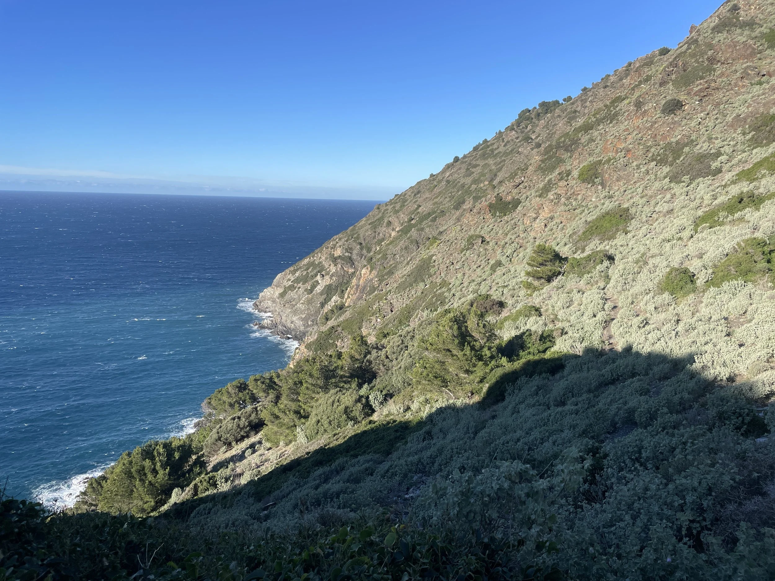 Une fois garé, avant de partir randonner, vous pouvez vous rapprocher de la côte pour aller admirer la vue sur la plage du Mont Salva. Il y a quelques sentiers pour accéder à plusieurs points de vue.