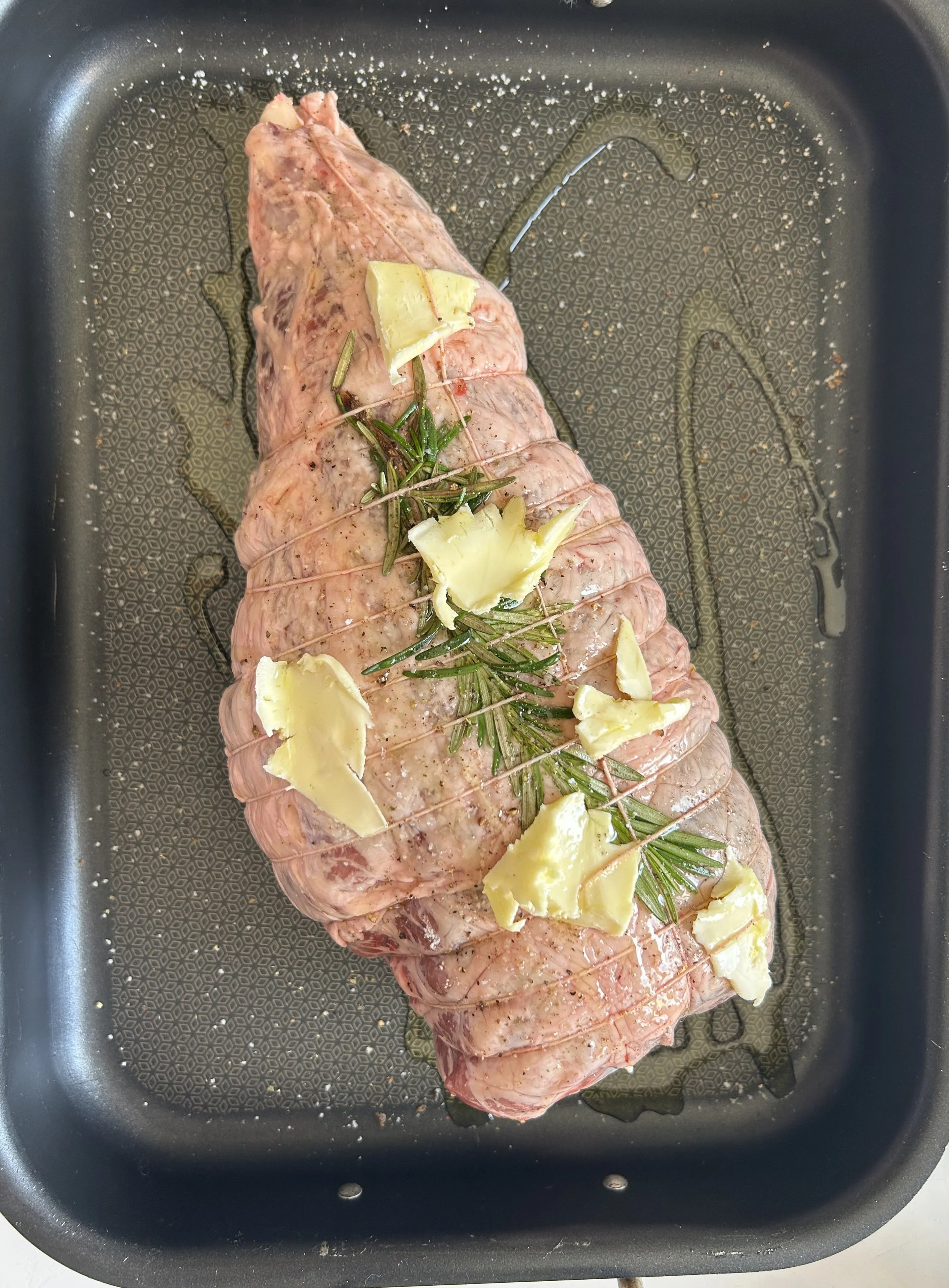 Assaisonner le gigot de sel et de poivre et l’enduire de beurre. Le mettre dans un plat allant au four avec 3 cuillerées à soupe d'huile d’olive, thym et herbes de Provence.