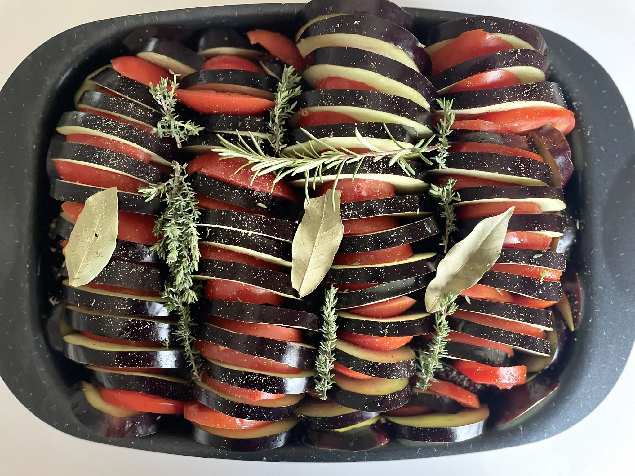On parle souvent du tian de légumes. J’ai eu en héritage une recette qui ajoute de l’agneau au fond du plat, qui va s’attendrir en cuisson grâce au jus des légumes et à la cuisson longue. Le tout donne un plat absolument délicieux avec un agneau remarquablement fondant. Un régal…